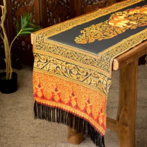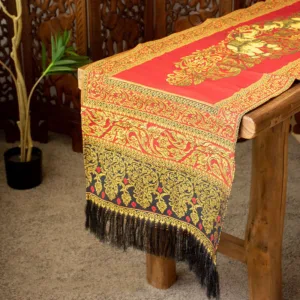 Transform your space with our Mythstone Vintage Elephant Pattern Tassels Strength Table Runner. The elegant design features delicate embellishments and a vintage touch. This versatile piece serves as both a decorative element and practical accessory. The Elephant symbolizes strength and wisdom. radiating positivity throughout your home.
