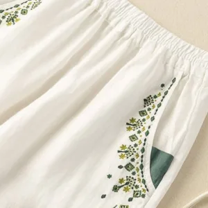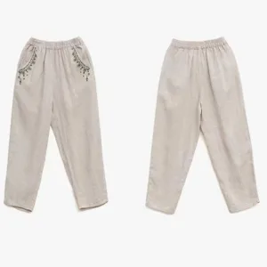 Vintage Embroidery Harem pants feature an elastic waist and intricate embroidery. combining traditional artistry with modern comfort. These harem pants are designed with a relaxed fit and functional pockets. symbolizing ease and practicality. The unique embroidery adds a touch of cultural heritage. making these pants perfect for those who appreciate both style and comfort in their everyday wardrobe.