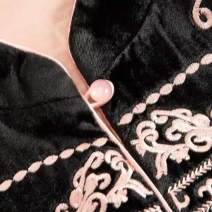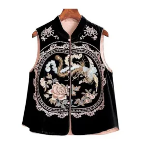 Flower Leaves Embroidery Tang Vest features a traditional Tang suit design with intricate floral and leaf embroidery. Crafted with care. this vest embodies cultural symbolism. promoting harmony and growth. The detailed embroidery adds depth. making it a meaningful choice for those seeking a connection with heritage and inner peace. This vest provides comfort while inspiring tranquility and mindfulness. perfect for embracing cultural roots in daily life.