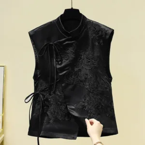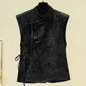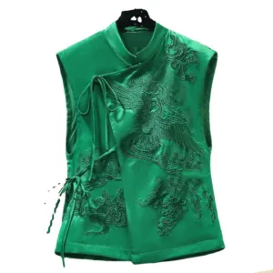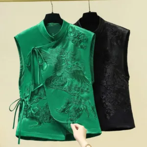 White Crane Embroidery Vest showcases a traditional crane pattern on soft polyester fabric. symbolizing longevity and peace. Available in two colors??green and black??this vest embodies cultural richness and meaning. The intricate embroidery adds depth. creating a thoughtful piece for those seeking tranquility and balance. Designed to inspire connection with nature. this vest encourages a sense of serenity and spiritual well-being in daily life.