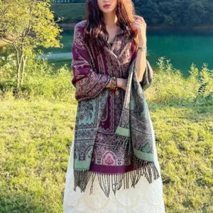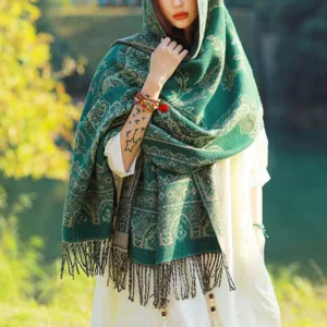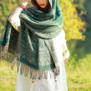 Mythstone Tibetan Shawl radiates serene energy. crafted from premium natural fibers that promise comfort and spiritual alignment. Its intricate leaves pattern. inspired by Tibetan heritage. is not just a design but a conduit for tranquility and mindfulness. The shawl’s soft texture and comforting embrace enhance meditative practices and daily mindfulness. making it an ideal companion for those seeking a harmonious balance in life.