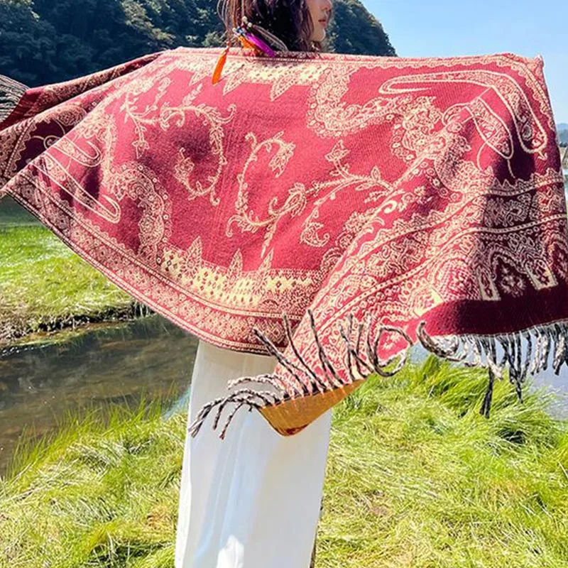 • Multiple Uses: This high-quality designed fashionable Tibetan scarf can be used as a travel blanket. evening shawl. or throw blanket when snuggling on the sofa. it can be worn with coats. sweaters. pullover. shirts. and more.