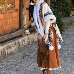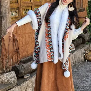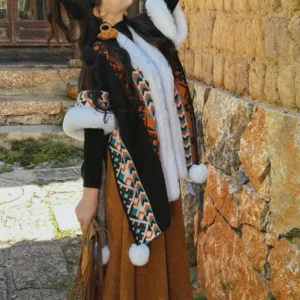 Experience the warmth and elegance of our Mythstone Vintage Tibetan Shawl. Crafted with care. this cozy travel scarf serves as a versatile wrap or coat for winter adventures. The vintage Tibetan design adds a touch of cultural charm. Wrap yourself in its softness and stay cozy throughout your travels. Embrace the comfort and style of this scarf. perfect for chilly days and nights.
