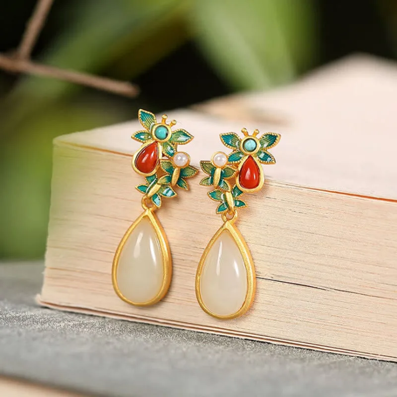 Experience the protective qualities of White Jade and the symbolism of love and freedom with our Mythstone Water Drop White Jade Red Agate Butterfly Protection Drop Dangle Earrings. Handcrafted for positive energy and meaningful blessings.