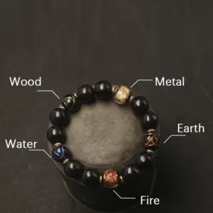 5 Elements are metal. water. wood. fire. and earth. in feng shui. The meanings of the 5 different colors of the beads are as followings: