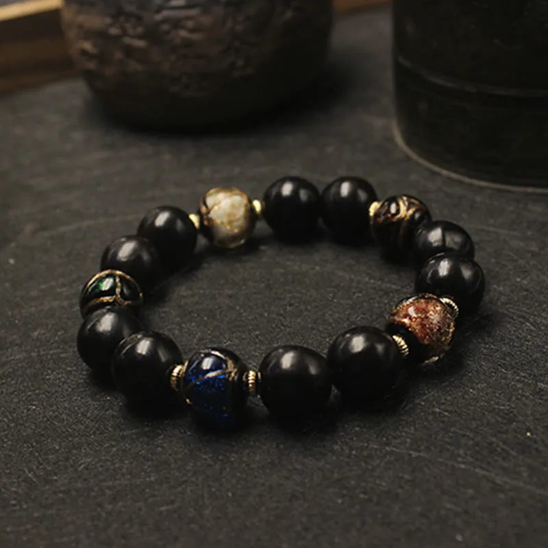 This unique bracelet combines Western Soapberry Incense Ash and Liuli Glass beads. creating a perfect accessory for meditation enthusiasts and those seeking wealth attraction. Its elegant design suits various styles. making it a versatile and meaningful addition to any jewelry collection.