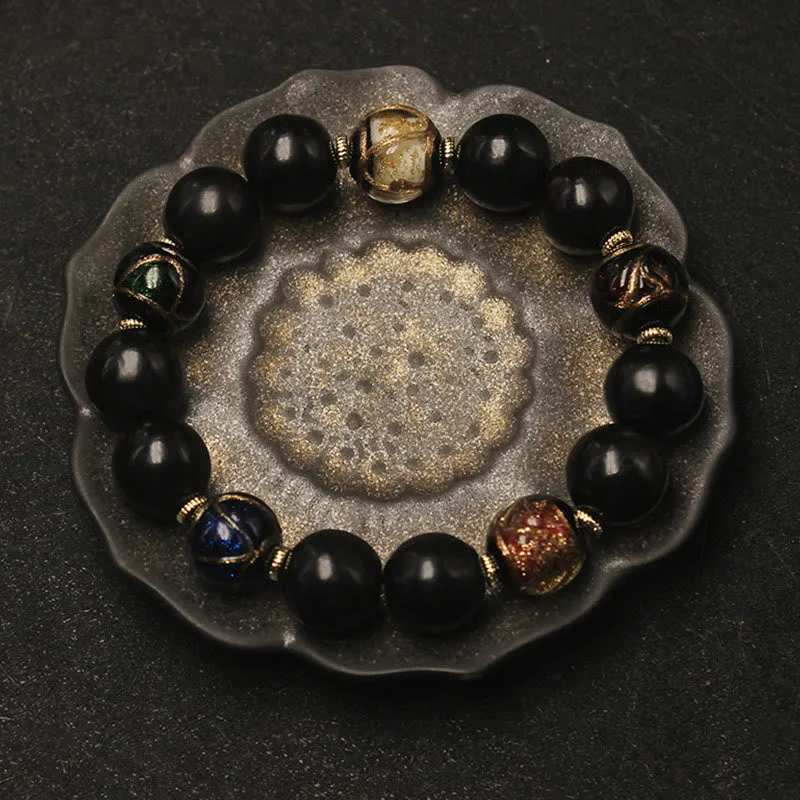 Mythstone Western Soapberry Incense Ash Liuli Glass Bead Wealth Bracelet