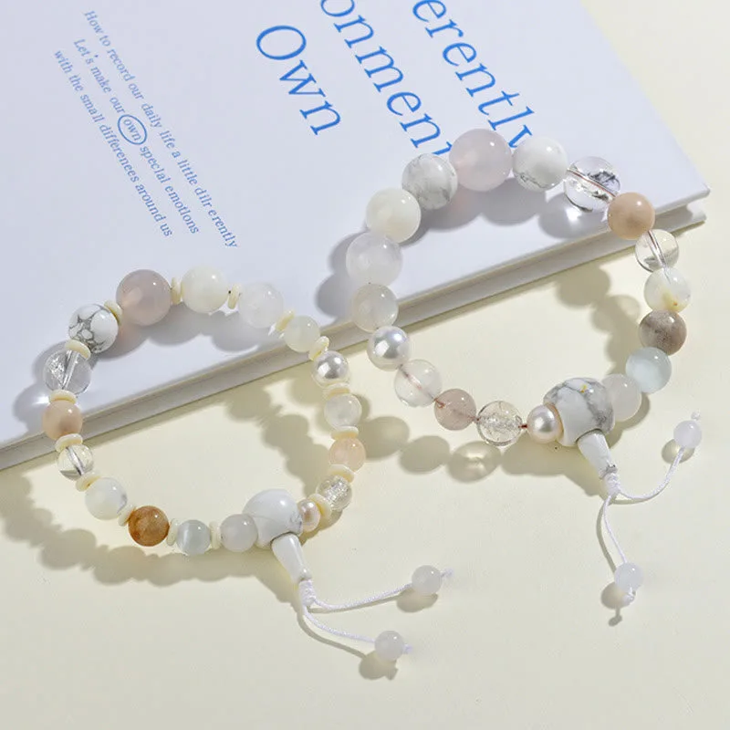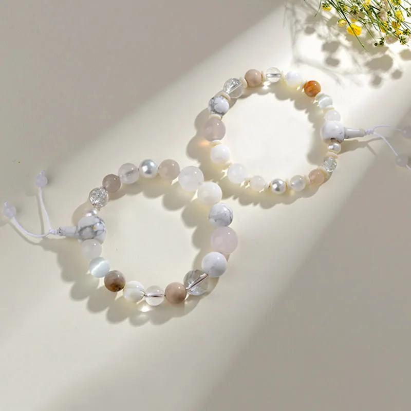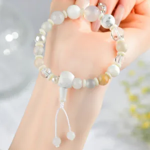 White Agate Pearl Braceletfeatures a combination of white agate and pearl. symbolizing balance. clarity. and positive energy. This 18-bead bracelet helps to harmonize the wearer’s spiritual and emotional well-being. offering protection and calmness. The soothing energy of agate and pearl makes this bracelet perfect for those seeking serenity. peace. and luck in their personal and professional journey.