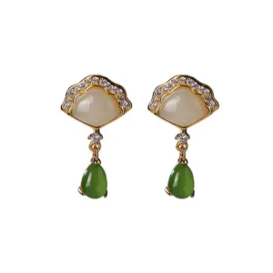 Be the first to review “Mythstone White Jade Cyan Jade Fan Water Drop Pattern Luck Drop Earrings”