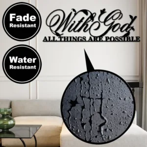 Infuse your space with inspiration through the Mythstone ‘With God All Things Are Possible’ Metal Sign Wall Art. This exquisite piece combines artistry with a motivational message. reminding you of the boundless possibilities that faith can bring. Elevate your surroundings with this meaningful decor that radiates positivity and hope.