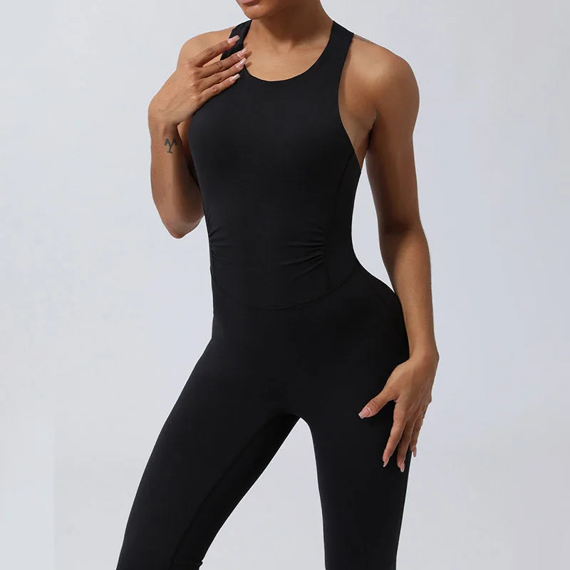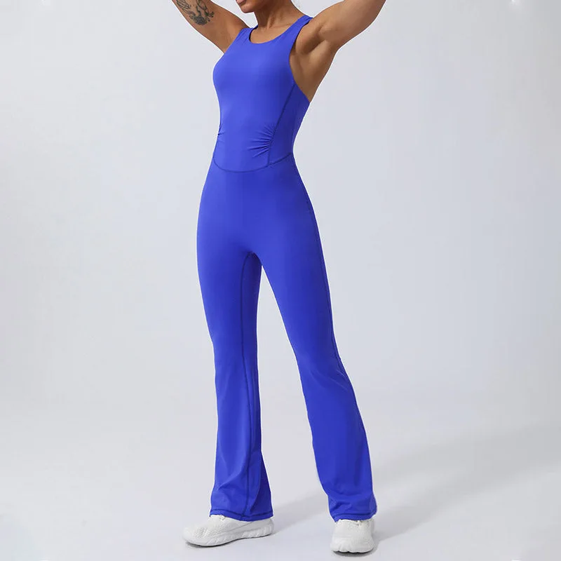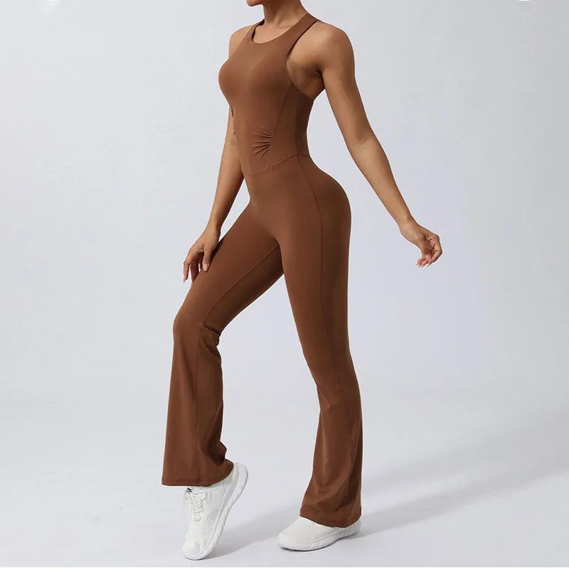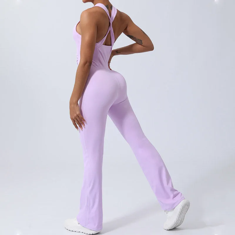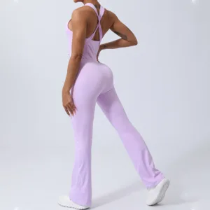 Crisscross Sleeveless Flare jumpsuit is designed with an athlete’s mobility in mind. This sports fitness yoga bodysuit features a unique crisscross back that allows for full range of motion while maintaining style and support. The flare leg design enhances comfort and freedom. making it an ideal choice for rigorous workouts or serene yoga sessions. Crafted for performance and comfort. it’s a versatile addition to any fitness wardrobe.
