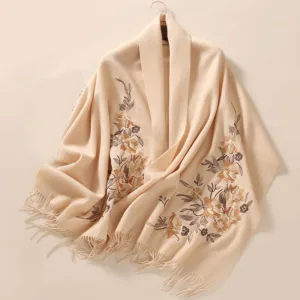 Flowers Leaves Embroidery Wool Shawl offers exceptional warmth and comfort. crafted from soft wool. The intricate floral and leaf embroidery symbolizes nature’s beauty and tranquility. making it a meaningful accessory. The tassels add a gentle touch of elegance. while the cozy material ensures comfort during colder seasons and travel. This shawl brings a peaceful energy. perfect for moments of relaxation or spiritual reflection.