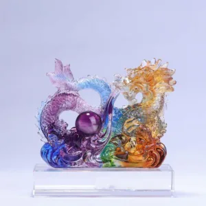 The Liuli Art Piece features dragon symbols and craftsmanship. It’s popular among most people because it attracts good luck. fortune. abundance. wealth. protection. and prosperity. It also serves as a shield against negativity and stress. Furthermore. it could be your bodyguard and help you achieve a better balance of energy.