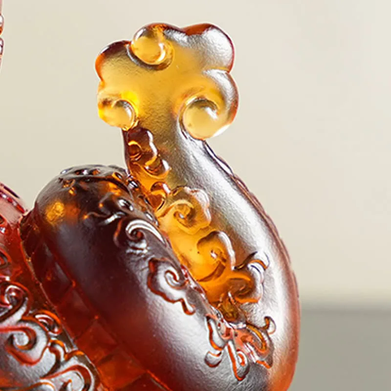 The Liuli Art Piece features Snake symbol and craftsmanship. It’s popular among most people because it attracts good luck. fortune. abundance. wealth. protection. and prosperity. It also serves as a shield against negativity and stress. Furthermore. it could be your bodyguard and help you achieve a better balance of energy.