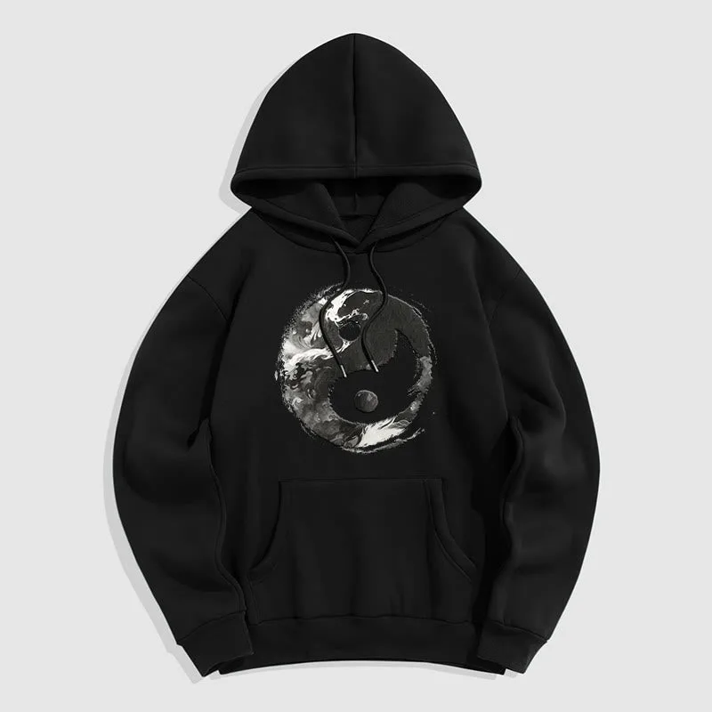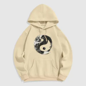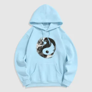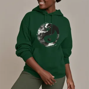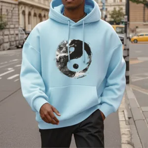 • DESIGN INSPIRATION: This hoodie features the classic Yin Yang symbol. representing the balance and harmony between opposing forces. Its fluid design emphasizes the interconnectedness of light and dark. illustrating the idea that dualities coexist and complement each other.