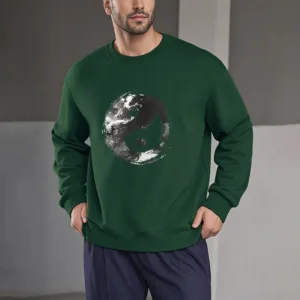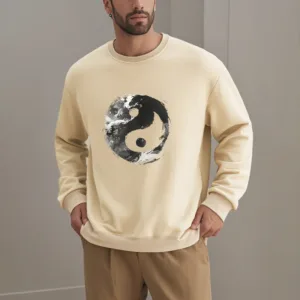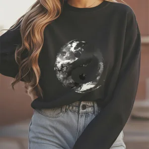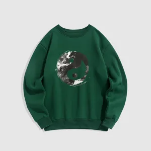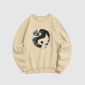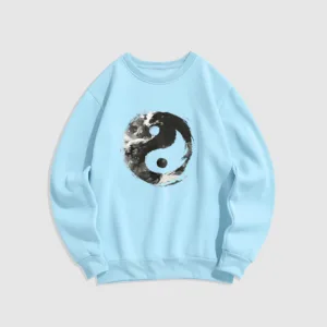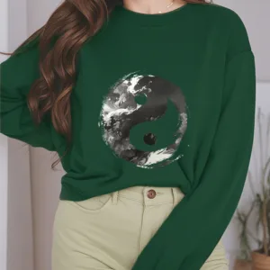 - DESIGN INSPIRATION: This sweatshirt features the classic Yin Yang symbol. representing the balance and harmony between opposing forces. Its fluid design emphasizes the interconnectedness of light and dark. illustrating the idea that dualities coexist and complement each other.