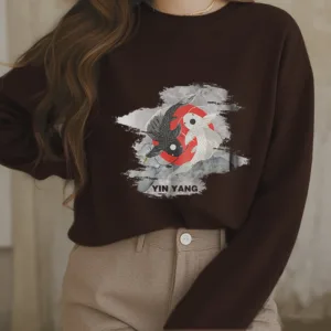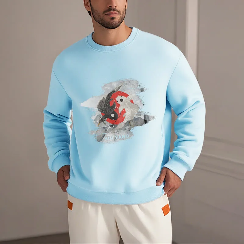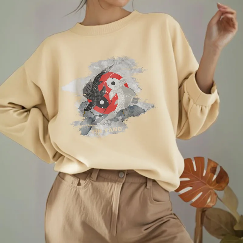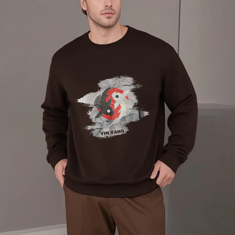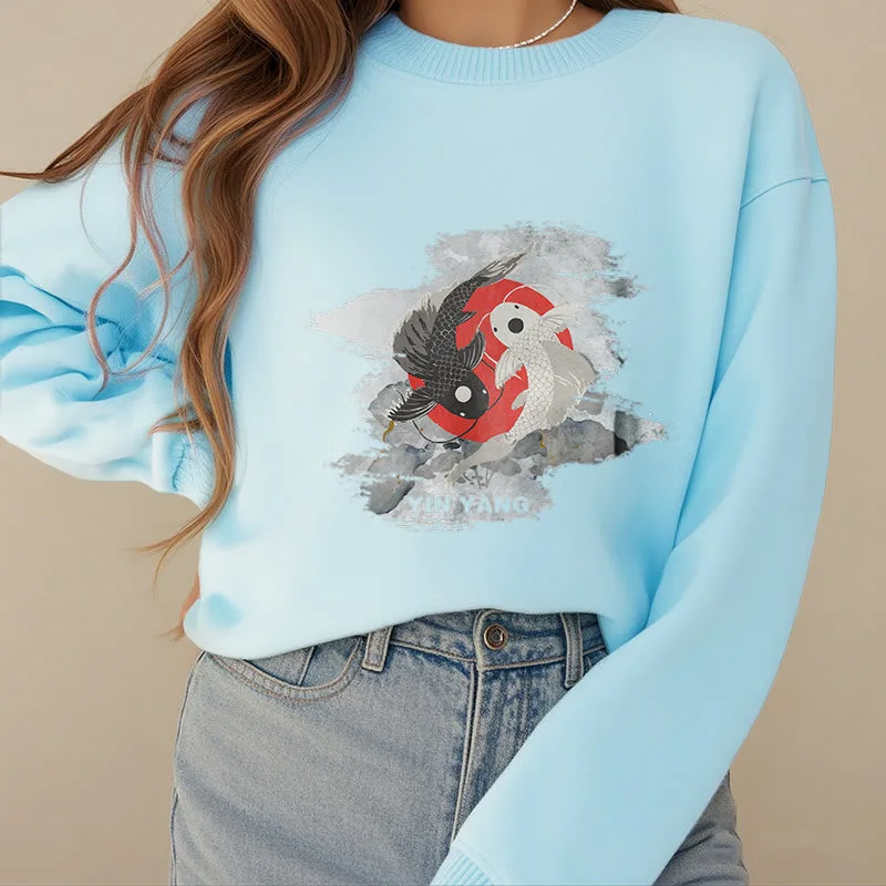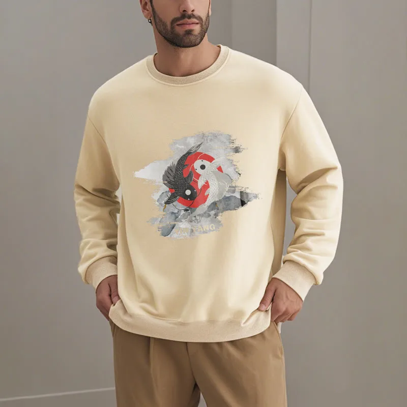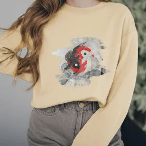 - DESIGN INSPIRATION: The Sweatshirt features a yin-yang symbol intertwined with koi fish. representing harmony and balance in life’s dualities. as well as perseverance and transformation.