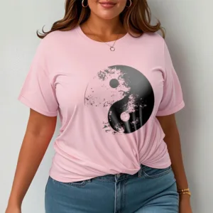 Yin Yang Tai Chi Pattern Cotton Tee T-shirt features an artistic design of the Yin Yang symbol. representing the balance of opposites. Made from soft cotton. it offers comfort while embodying the principles of harmony and duality. This shirt symbolizes unity. spiritual balance. and inner peace. making it a meaningful addition to those who seek to reflect on these timeless concepts in daily life.