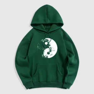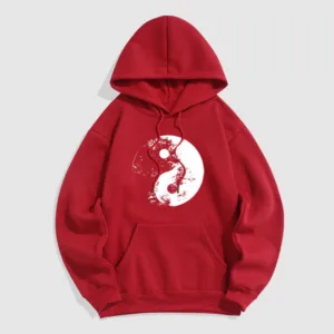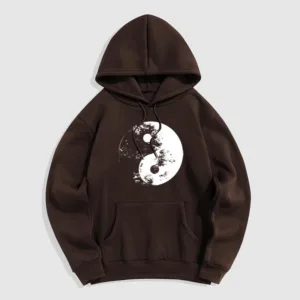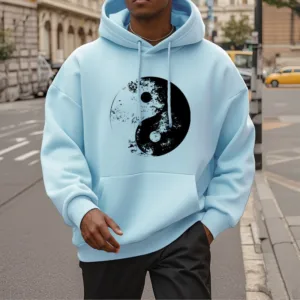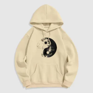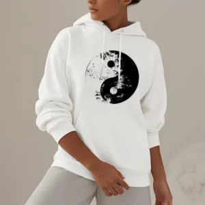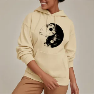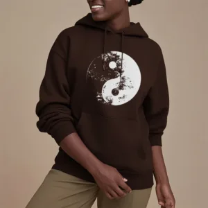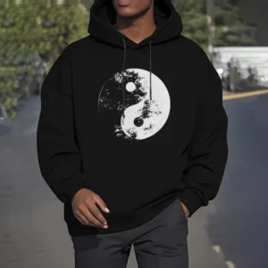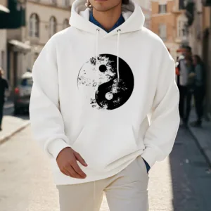 - DESIGN INSPIRATION: This hoodie features a stylized Yin Yang symbol. depicted with a textured and artistic flair. It represents the balance of opposing forces. highlighting the importance of harmony and duality in life.