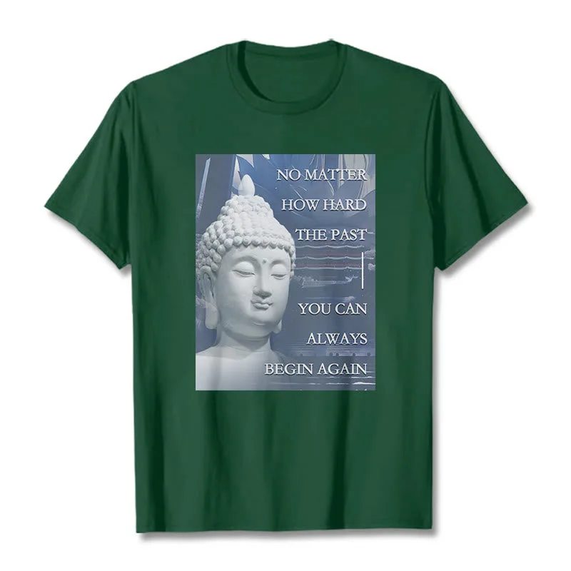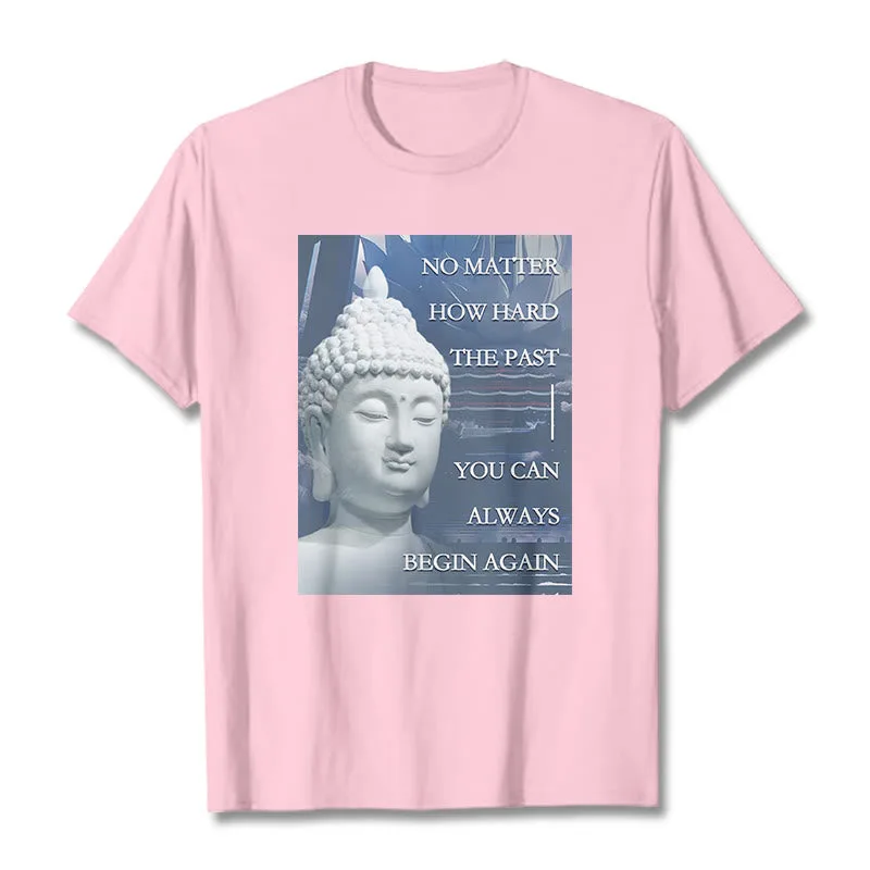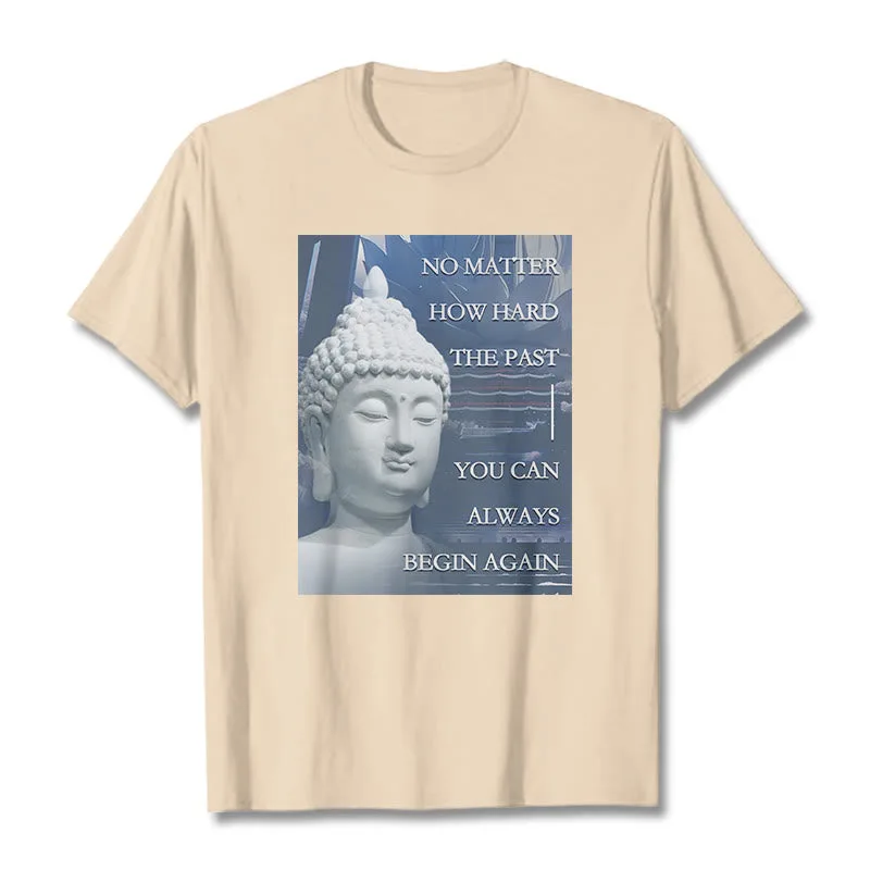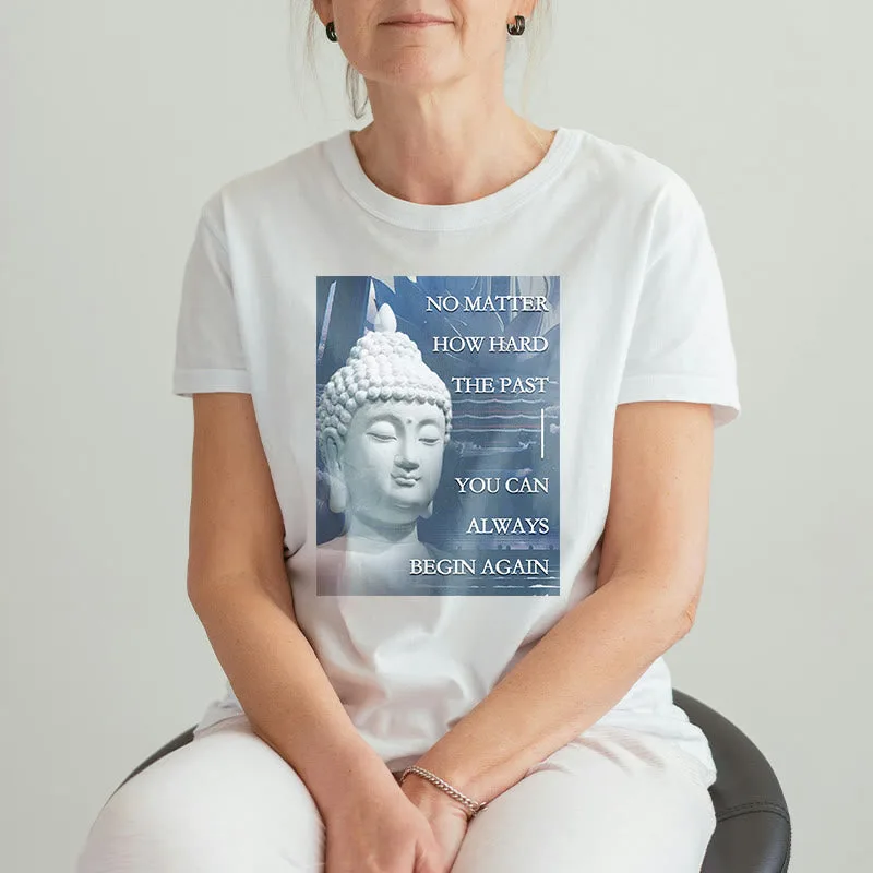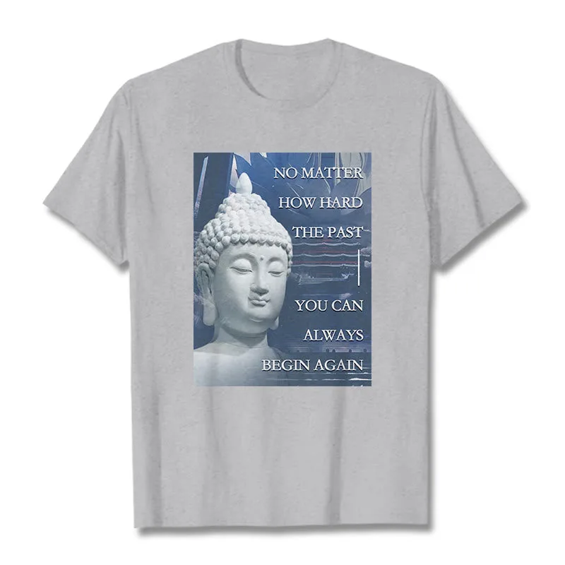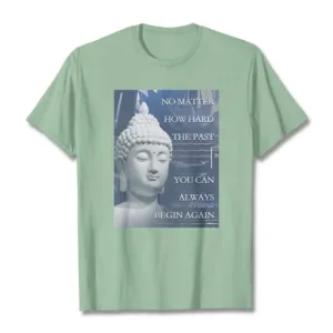 You Can Always Begin Again T-shirt features an encouraging message with a serene Buddha design. symbolizing renewal and hope. Made from soft. high-quality fabric. this t-shirt inspires a fresh start and positive mindset. Perfect for daily wear. the uplifting graphic serves as a reminder that each day is a new opportunity. making it a meaningful addition to your wardrobe.