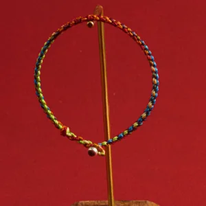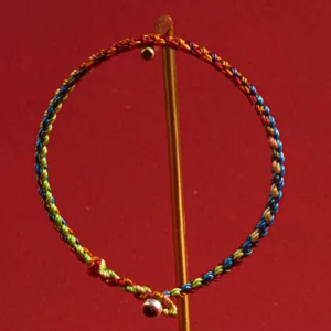 In lineages of Tibetan Vajrayana Buddhism. tying a cord or string around the wrist is common during ceremonies. Traditionally. the Lama blesses the string and then ties a knot and imbues it with a mantra. Similar to other traditions. it’s said that these red cords bring luck and offer protection.
