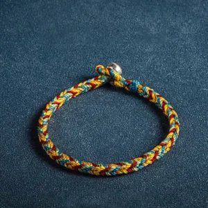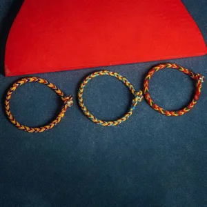 In lineages of Tibetan Vajrayana Buddhism. tying a cord or string around the wrist is common during ceremonies. Traditionally. the Lama blesses the string and then ties a knot and imbues it with a mantra. Similar to other traditions. it’s said that these red cords bring luck and offer protection.