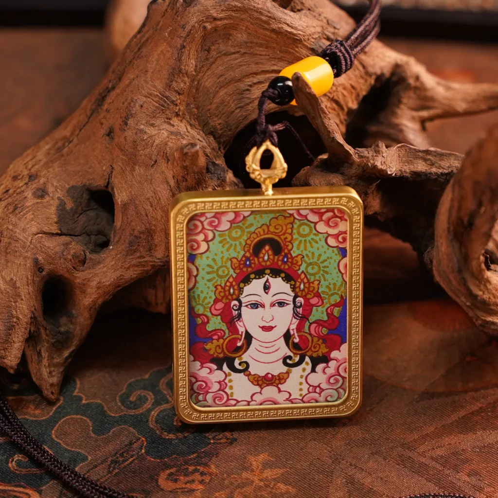 This sacred necklace, crafted to address the core issue of “impure body and mind, distorted conduct,” embodies the White Tara. The White Tara, with her seven eyes of illumination, symbolizes the pure and unblemished body of the precepts and the wisdom that discerns the finest details. Her radiant white light purifies all karmic obstacles in body, speech, and mind.