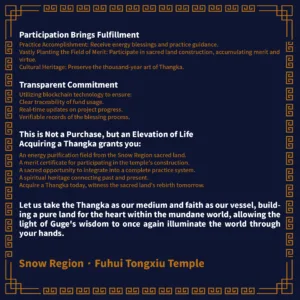 To ensure your Thangka is energetically connected to the main hall of the [Fuhuitongxiu Temple] and to activate your exclusive benefits, please contact us via WhatsApp and send your order number or the email associated with your order. You will:
