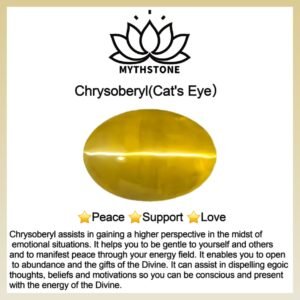 Chrysoberyl assists in gaining a higher perspective in the midst of emotional situations. It helps you to be gentle to yourself and others and to manifest peace through your energy field. It enables you to open to abundance and the gifts of the Divine. It can assist in dispelling egoic thoughts. beliefs and motivations so you can be conscious and present with the energy of the Divine.