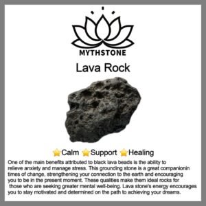 One of the main benefits attributed to black lava beads is the ability to relieve anxiety and manage stress. This grounding stone is a great companion in times of change. strengthening your connection to the earth and encouraging you to be in the present moment. These qualities make them ideal rocks for those who are seeking greater mental well-being. Lava stone’s energy encourages you to stay motivated and determined on the path to achieving your dreams.