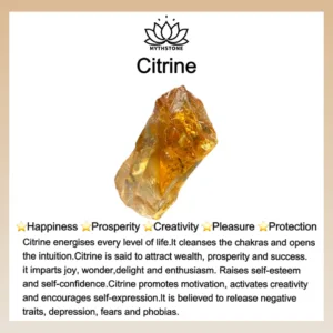 delight and enthusiasm. Raises self-esteem and self-confidence.Citrine promotes motivation. activates creativity and encourages self-expression.lt is believed to release negative traits.depression. fears and phobias.