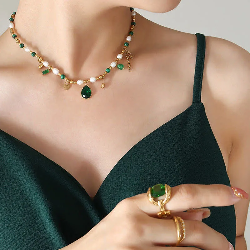 - Material: Pearl. Titanium Steel. 18K Gold. Zircon. Turquoise. Jade