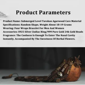 - Material: Agarwood. 925 Sterling Silver. 999 Pure Gold 24k Gold Beads