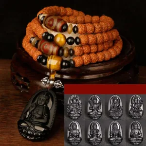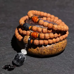 - Material: Bodhi Seed. Tiger Eye. Yak Bone. Copper. Cinnabar. Turquoise. Black Onyx. Black Obsidian. Dzi Bead