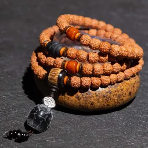 Bodhi in sanskrit translates to “enlightened” or “awakened.” therefore the bodhi seed means ” enlightened seed”. As an “enlightened” seed. many practitioners wear the bodhi seeds during their meditation practices to ultimately reach enlightenment. Bodhi is also a term in Buddhism to reflect a Buddha’s understanding of the true nature of things. These dark-speckled seed beads have special meaning for all seekers of divine wisdom.