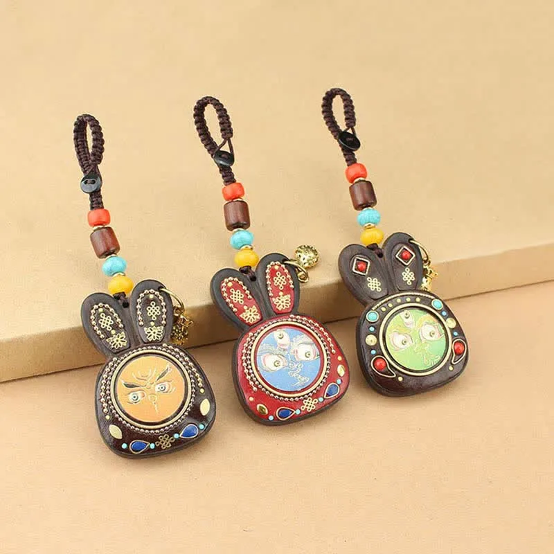 Tibet Ebony Five God of Wealth Thangka Key Chain