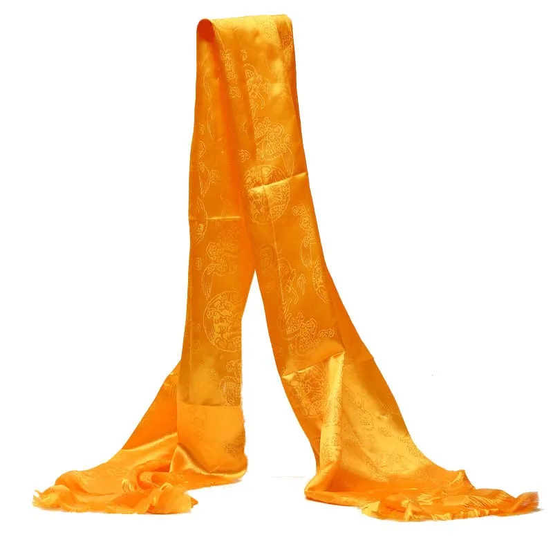 - Tibetan people used to give animal skins as gifts because there was no silk in Tibet. According to the Bonhistorical record. people would put sheep wool around their necks during the time of the ninth king. Degong Jayshi. and head for some religious rituals. This tradition was passed down from that moment onwards. People began making scarves and using silk over time. So. the scarf replaced the plain sheep’s wool and people put scarves on the neck and head.
